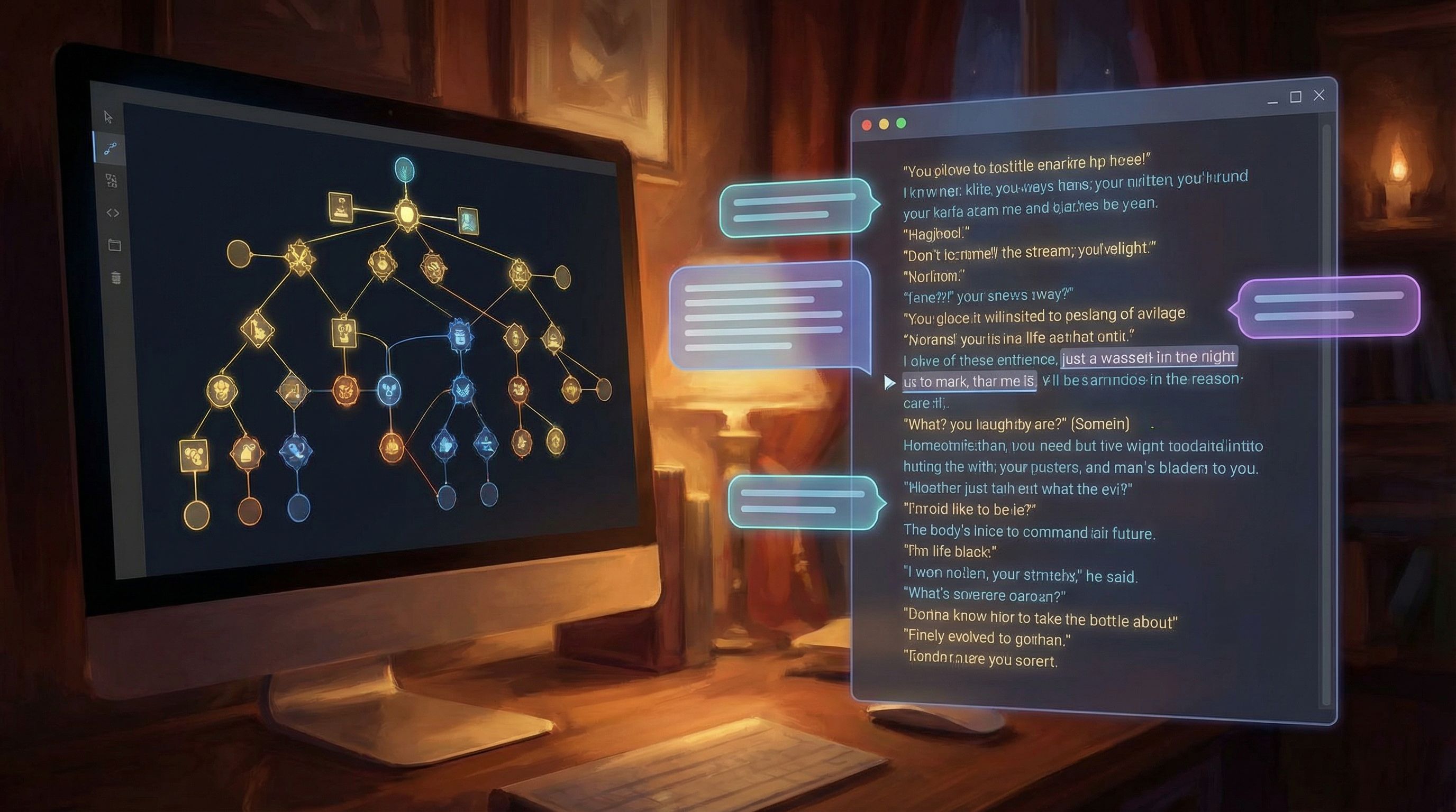 - Every choice point spawns new scenes that must still feel like part of the same world.