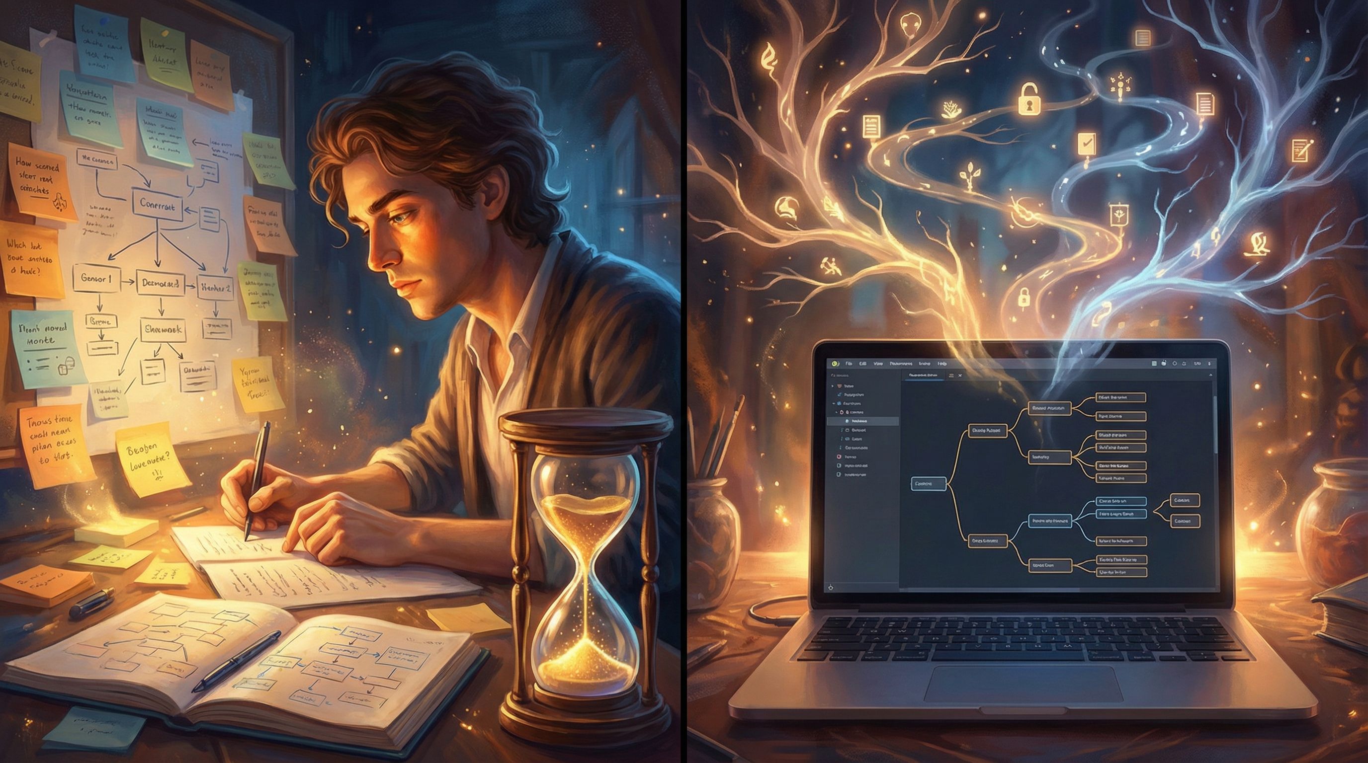 - Promotes decisive storytelling: you commit to a core arc and stick with it