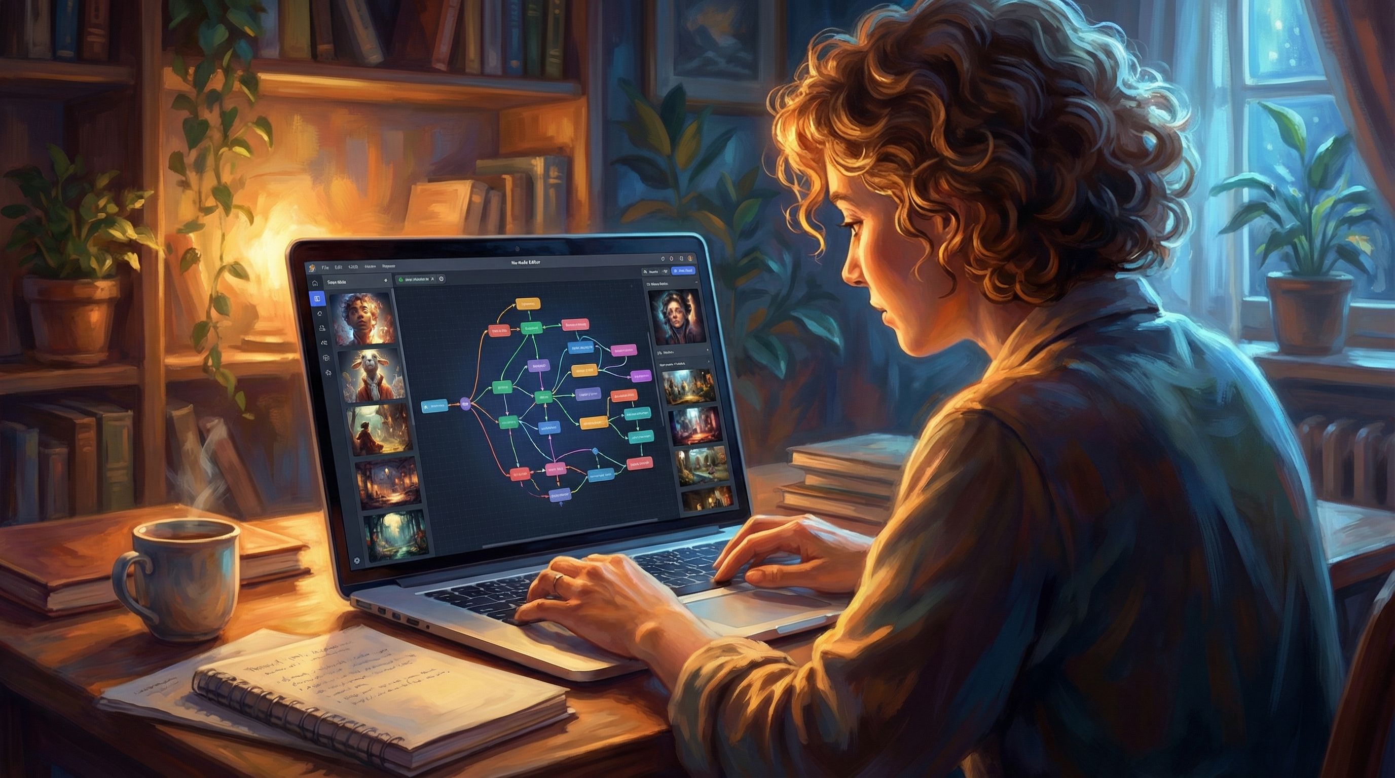 - Create scenes and choices.