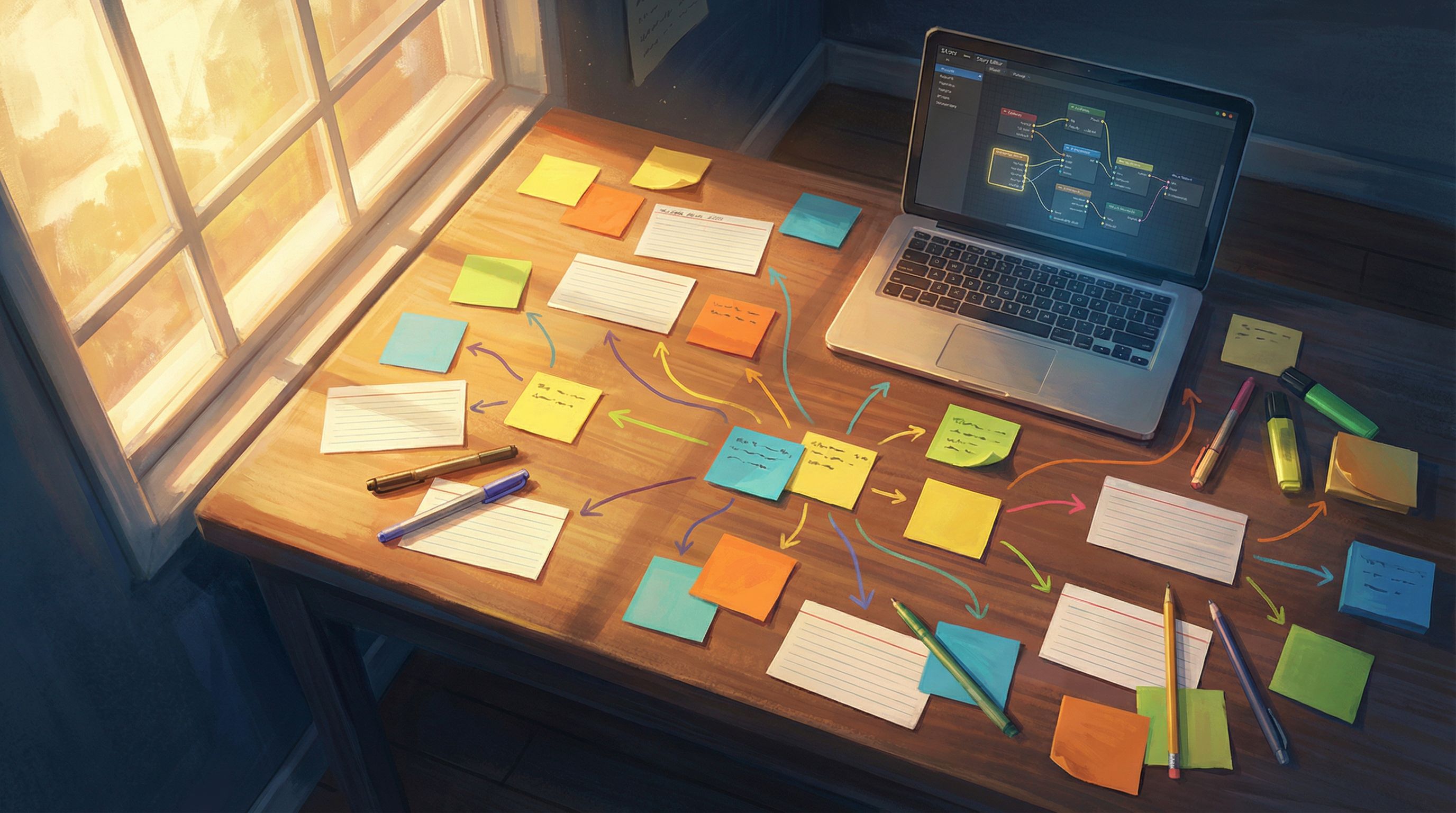 - Normalize ideas into a node map with clear purposes, limits on width/depth, and deliberate bottlenecks.