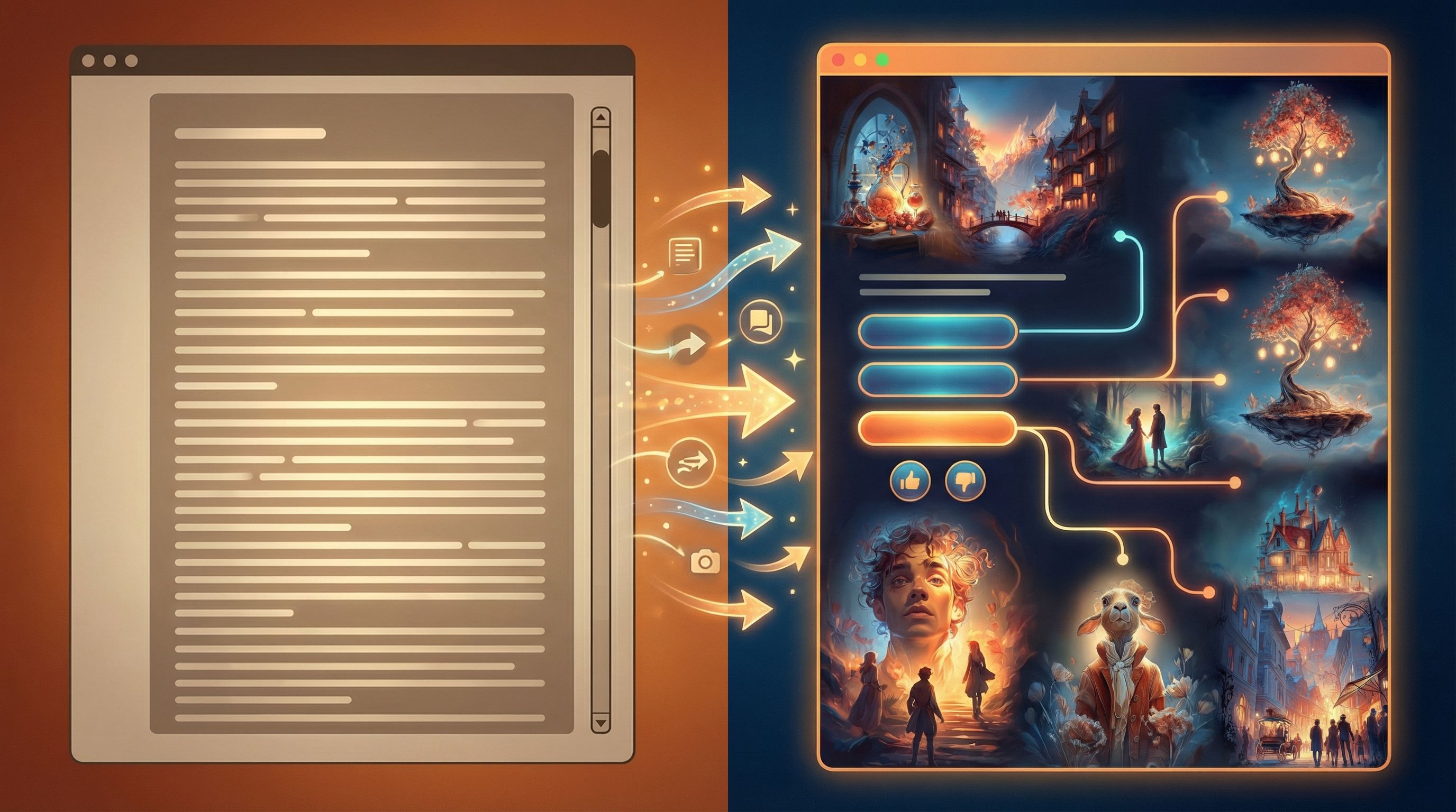 That’s where Questas comes in. It gives you a visual, no‑code canvas to turn static articles into branching, choice-driven adventures—complete with AI‑generated images and video.