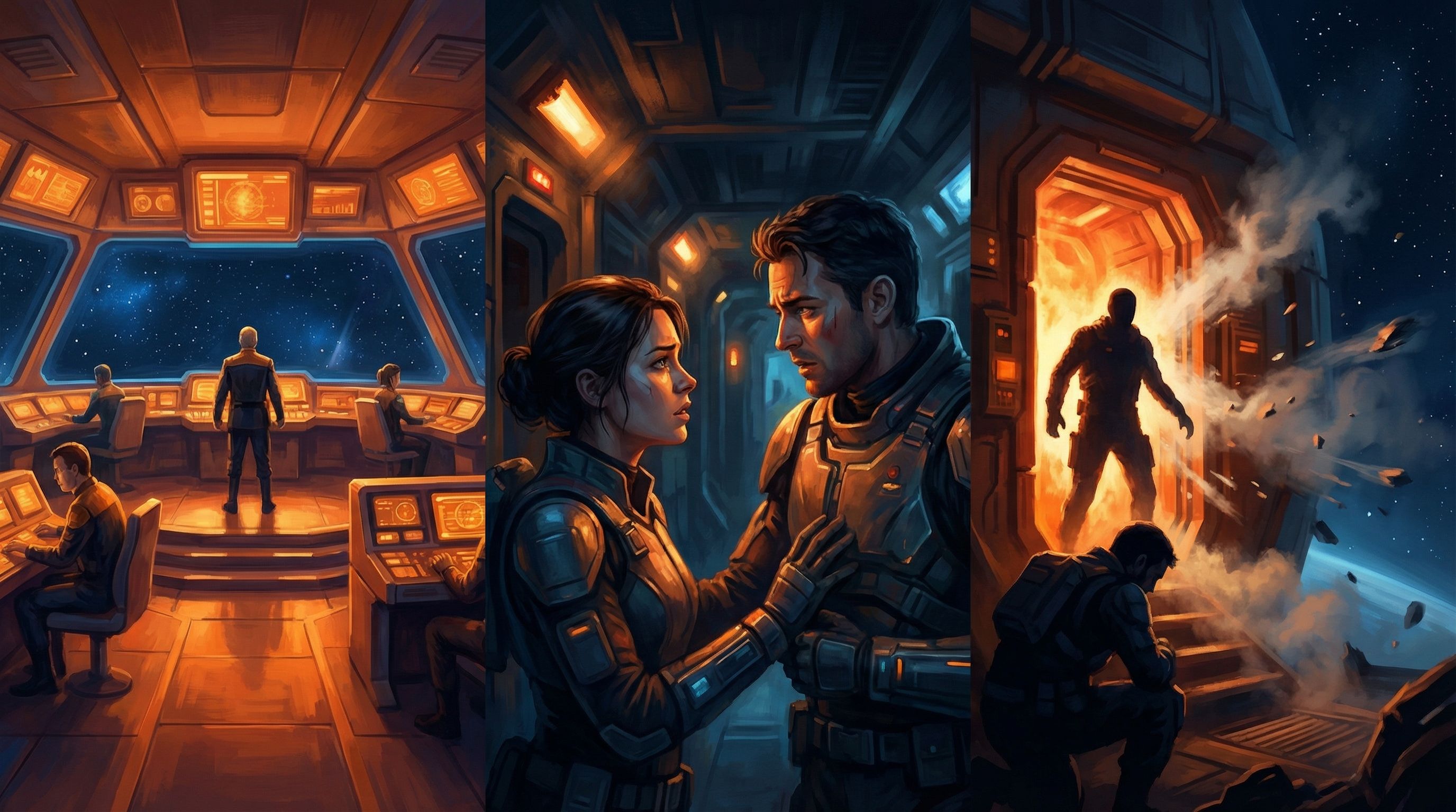 - Reuse visual motifs (a red warning light, a family photo, a broken emblem) at key beats.