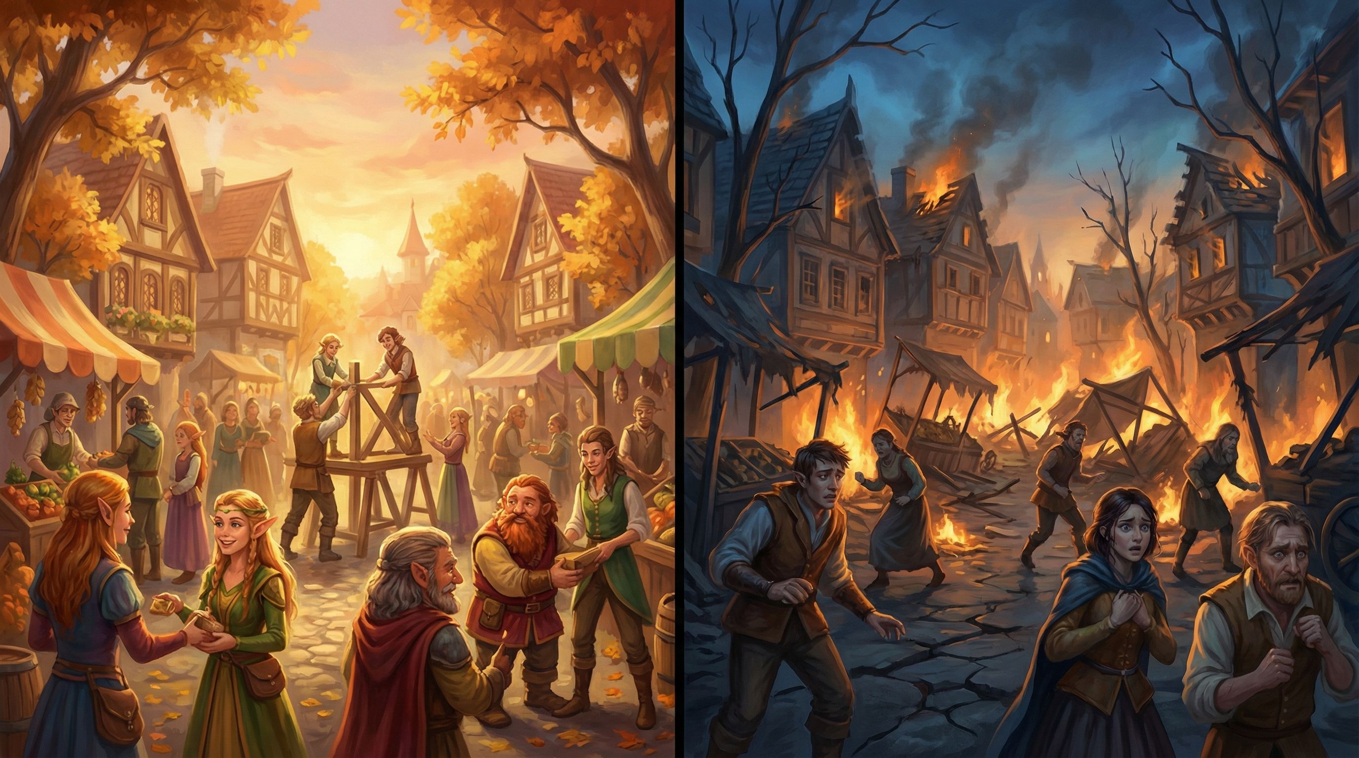 - Depict alternate timelines visually—two versions of the same city, one thriving, one in ruins.